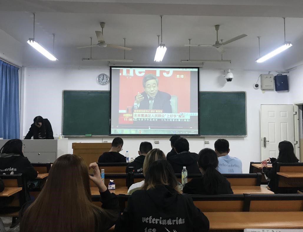 (图三:动医163班以“学习党的十九大”为主题观看党的十九大视频)
