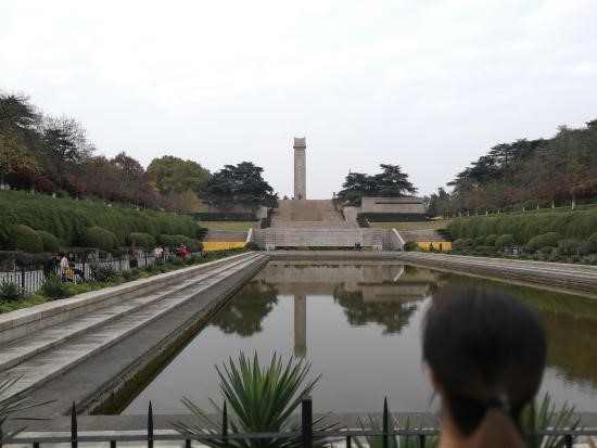 由于雨花台多处维修,团队成员最后一站来到了雨花台纪念碑前的倒影池,周围精美的浮雕、用五个民族语言写下的国歌,吸引同学们纷纷驻足观察。