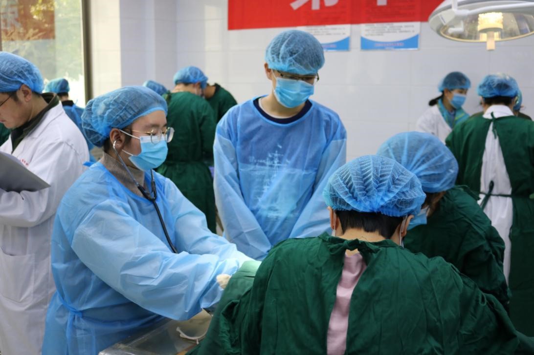 在外科手术比赛环节中,通过兔小肠缝合手术的形式考察同学们对手术流程的理解和实际操作水平。参赛选手竭尽所学,充分发挥自己的能力,体现了动医学子笃学敦行的道德品质及扎实的专业素养。