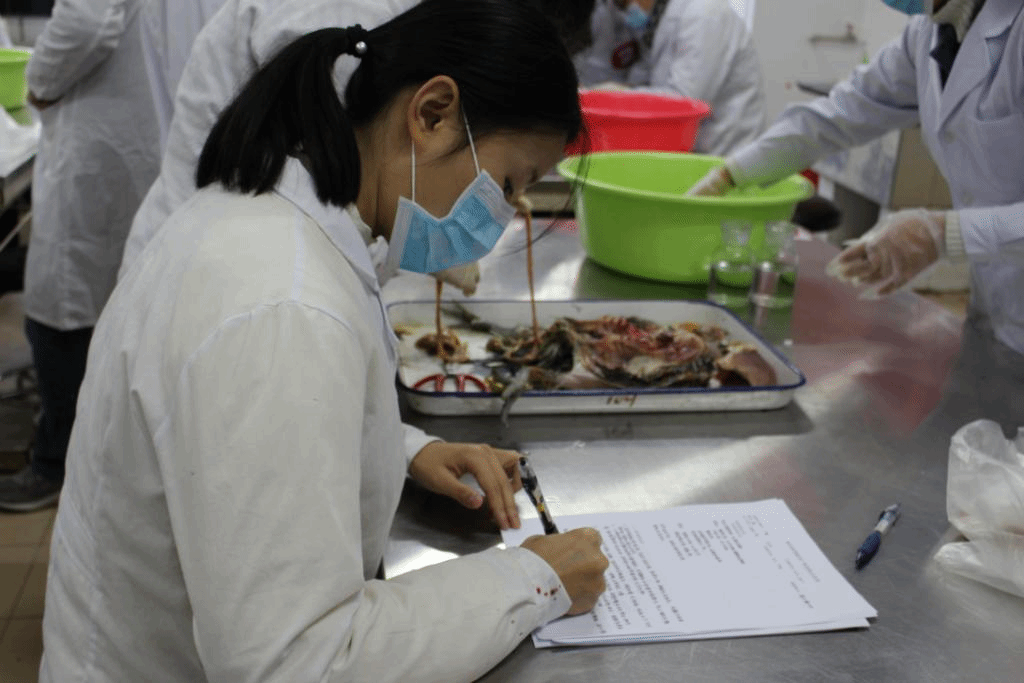 禽的病理解剖需要参赛选手细致观察并最终做出诊断,扎实的专业知识,娴熟的操作技巧,是参赛选手必备的素养,也是顺利完成病理解剖报告的组成要素。
