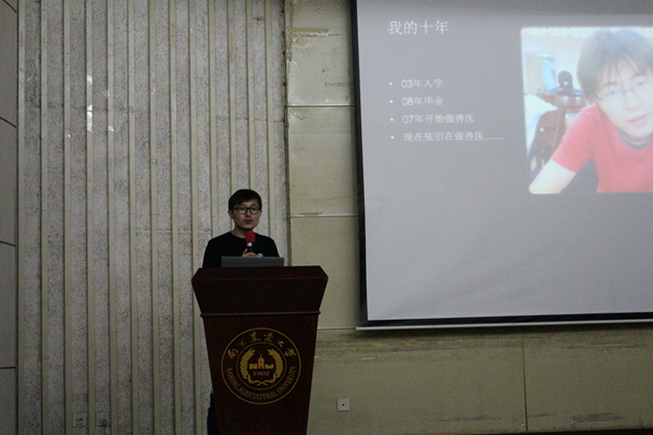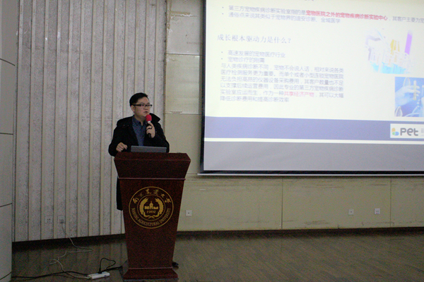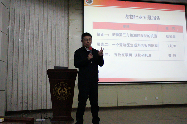首先,校友通过精彩的专题报告详细介绍了宠物行业的现状和发展。徐国华以《宠物第三方检测的现状和机遇》为主题,介绍了“第三方检测”的发展前景。王跃军讲述了自己选择宠物医生这一职业,并作为奋斗终身目标的人生历程,鼓励同学们坚定选择,努力奋斗。费翔以《宠物互联网+现状和机遇》为主题,以幽默风趣的口吻讲述了互联网和宠物领域结合后的远大前景。