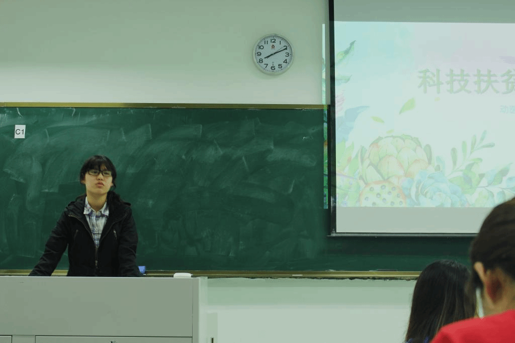 根据抽签顺序,15个小组依次上台分享,带来一场场精彩的主题汇报。动医171班一组汇报人邵玥琨、李南南围绕调研主题“思政课如何赢得青年”,详细介绍了小组线上问卷调查和线下师生调研的情况,邵玥琨表示,在采访思政老师梁玉泉过程中,充分的感受到思政老师的不容易,希望大家可以多多从自身角度反思“大学生不重视思政课的现状”。动医173班三组的调研主题为“科技扶贫”,汇报人黄欣桐表示,小组成员先是对于科技扶贫的一无所知,然后查阅资料逐步了解的过程,并通过采访我们园艺学院高志红老师、理学院陈道文老师的方式,详细了解我们在科技支农方面的贡献,收获颇丰。动强171班二组调研主题为“轻松筹的利与弊”,汇报人闫家洵向同学们详细介绍了轻松筹的发展历程、社会背景、优势和现阶段的弊端,通过问卷数据分析、采访视频展示,深度总结了轻松筹汇聚爱心的潜在法律漏洞、社会信任等问题,引起了同学们的兴趣。