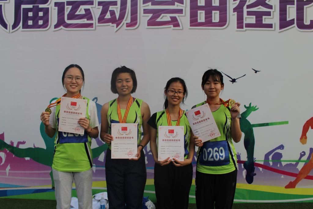 赛前的刻苦训练和赛场上观众们的呐喊助威让选手们信心十足,他们奋发向上的精神,顽强拼搏的意志给在场观众留下了深刻的印象。我们运动员在许多项目上也取得了不俗的成绩,其中表现突出的有:女子组,陈小竹夺得女子跳高第一名、女子跳远第四名;李梦玥夺得女子垒球第一名;陈小竹、吴静文、许秋华、徐金叶四位同学夺得4*100米第一名;徐金叶夺得女子100米第二名和女子跳远第六名;吴静文夺得女子100米第三名和女子200米第四名;黄嘉夺得女子1500米第三名;徐金叶、杨佳茂、苏热耶、陈小竹四位同学获得女子4*400米第三名;王聪聪获得女子三项全能第四名;许秋华获得女子200米第五名;刘亚娟获得女子跳高第八名。男子组,孟繁荣获得男子五项全能第五名;谭立恒获得男子400米第七名;杨鲁凡、蒋乐凡、任俊达、王志华四位同学获得4*100米第七名;蒋乐凡获得男子200米第八名;蒋乐凡、王志华、郭磊、祁伟凌四位同学获得男子4*400米第八名。团体项目中,集体跳绳获得第二名,师生迎面接力获得第七名。