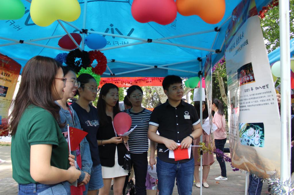 6月11号中午,我们“砥砺前行七十载,泱泱大国万事新”读懂中国系列活动在校友山广场进行最后的展示。活动以“中华人民共和国成立70周年”为主题,以时间为线索,分为:“众志成城护华夏”、“一化三改露峥嵘”、“科技进步保稳定”、“改革开放起春风”、“经济文化齐头进”、“民族复兴新时代”六个板块,通过前期调研、节目准备,最终进行户外展演,为全体师生上了一堂别出心裁的党课。