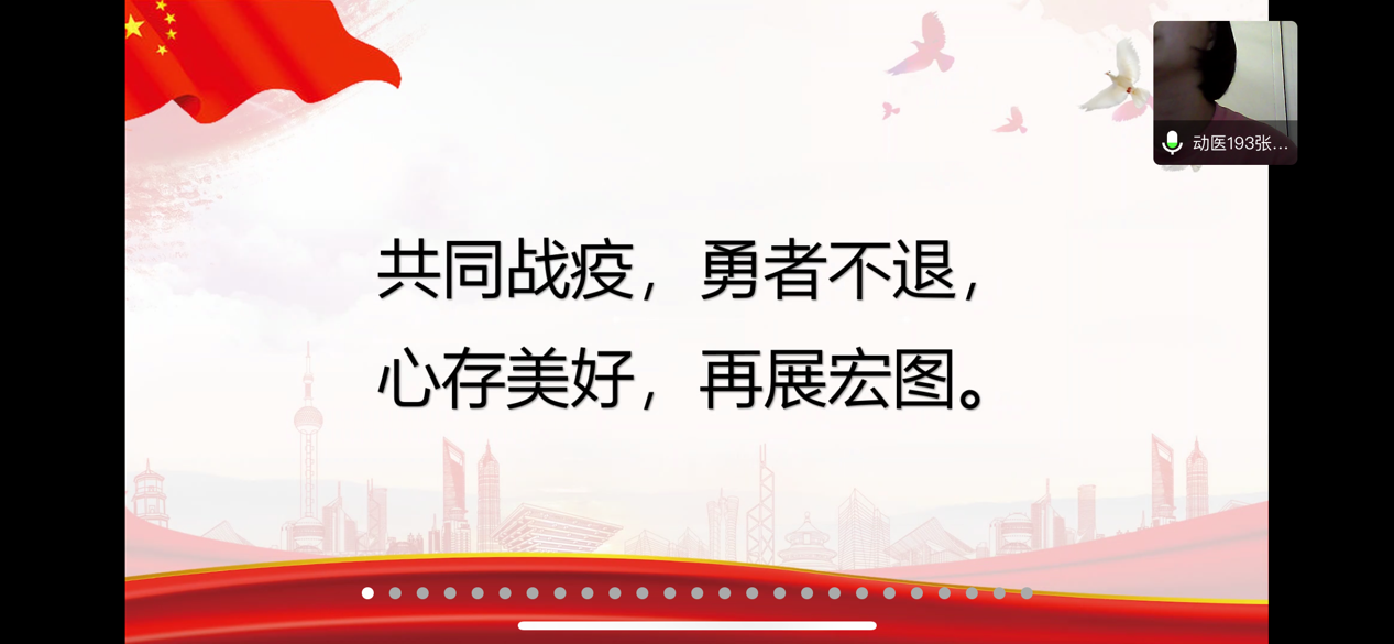 动医191第2组、动医193第6组、动医194第7组以“疫情战役之共同努力”为主题,结合国家在全球疫情方面做出的帮助与努力,展现出我们的大国担当,同样也强调我辈之责任,让我们在感慨国家强大的同时,激励我们不断地提升自我为国奉献。