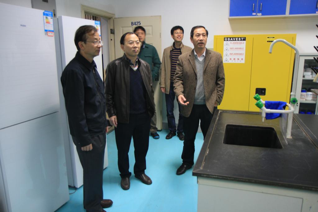 2015年11月12日上午,科技部农村司许曾泰处长和中国农村技术开发中心卢兵友处长、王振忠博士一行应学院院长周继勇教授的邀请,重点考察、参观了我们的教十一楼实验室、猪链球菌病OIE参考实验室、农业部动物细菌学重点实验室、农业部动物生理生化重点实验室