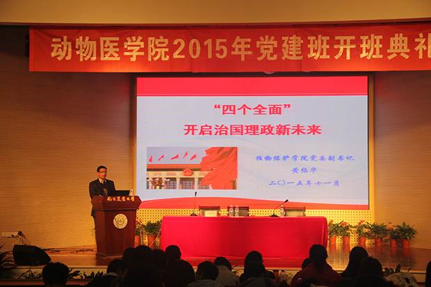 11月15日下午两点,伟德betvlctor体育官网2015年党建班开班典礼在大学生活动中心举办。植物保护学院党委副书记黄绍华、动医院党委副书记熊富强、政治学院马克思主义教研室主任朱娅出席开班典礼。全院本科生、研究生共200余名学员参加了典礼,开班典礼由辅导员郭荔主持。