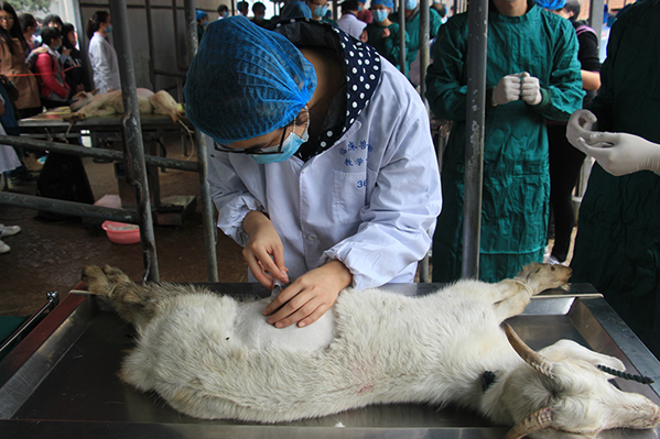 参加本次大赛一共有12个小组,本次外科手术大赛的内容是:羊的瘤胃手术比赛满分为55分。评判内容包括手术前的准备、手术过程的完成、手术后的整理等项目。比赛要求选手们在保证手术质量的前提下,尽可能快的完成比赛。