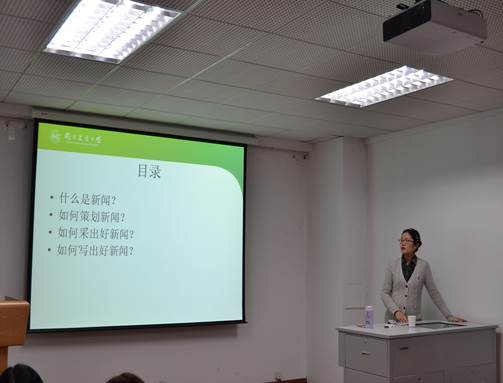 许天颖从专业的角度对写新闻做了分析,即“七分采访,三分写作”,并教导在座的同学要在采访前做好准备,从多个角度提问题采访。她让大家回顾了本校在这学期的各种重大新闻事件,培养大家的新闻敏感度,最后还让大家了解到写新闻时的各种注意事项。