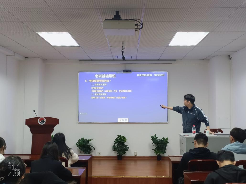 想要考研,自然需要首先了解考研的基础常识,韩校长带领同学们从毕业去向,分析考研数据,考研基本流程等方面为同学们一一解答,并贯彻“授人以鱼不如授人以渔”的教学理念带领同学们自己动手查找相关考研资料,让同学们印象深刻。