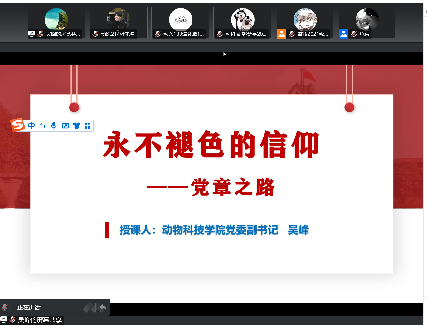 11月2日下午5点,我们通过腾讯会议举行了“永不退色的信仰”入党积极分子线上实践教学活动。本次报告由动物科技学院党委副书记吴峰主讲,伟德betvlctor体育官网2022级秋季全体新发展入党积极分子线上参会。本次线上教学活动的主题是“永不褪色的信仰--党章之路”。