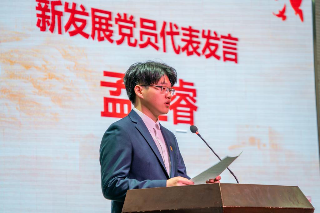 新发展党员孟圣睿和2022年初级党建班学员张欧雅作为代表发言。