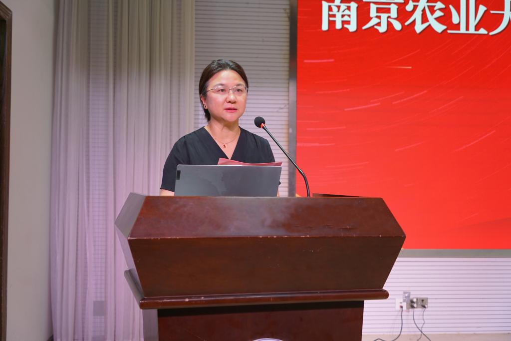 姜岩代表学院致辞,她指出奶业是“大食物观”系统中不可或缺的一部分,推进奶业振兴是保障经济社会平稳发展、满足人民群众美好生活需要的重要内容。她回顾了南农动医人在新中国奶业70多年的发展历程中付出的艰辛努力和做出的重要贡献,高度赞誉了现代牧业集团和南京卫岗乳业在推动中国奶业高质量发展道路上的坚守与创新。她强调,此次三家单位共学共建,是推进学习贯彻习近平新时代中国特色社会主义思想主题教育走深走实的重要举措,是推进调查研究和以学促干的重要方式,对于推进奶业发展着眼未来,锚定世界高标准;推进在创新发展中携手共进具有重要的现实意义。