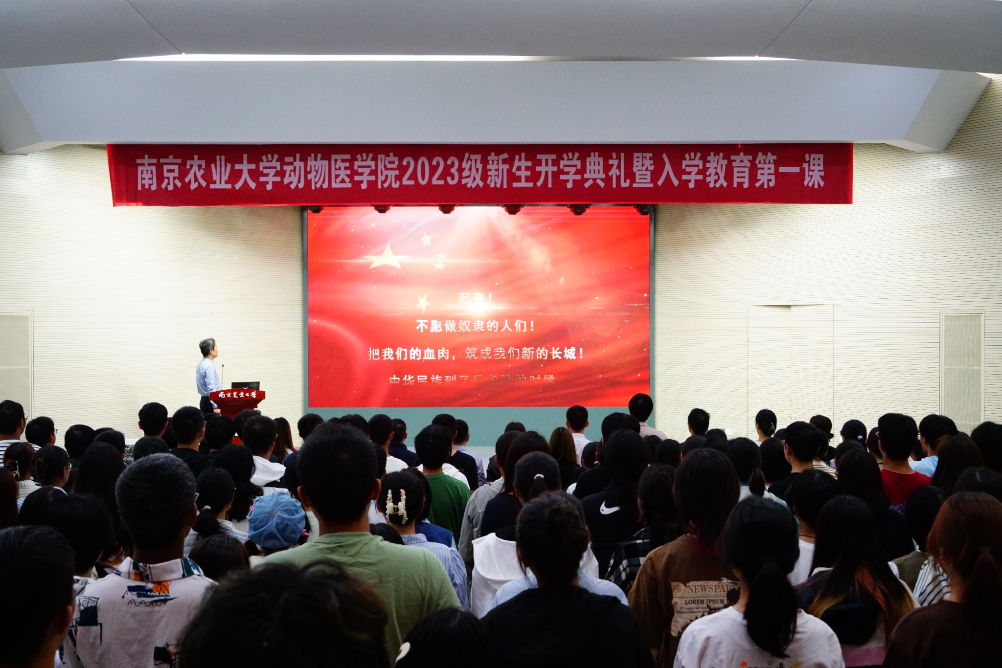 全体新生在领誓人的带领下进行入学宣誓,将“兽医人的职责和使命”铭刻于心。