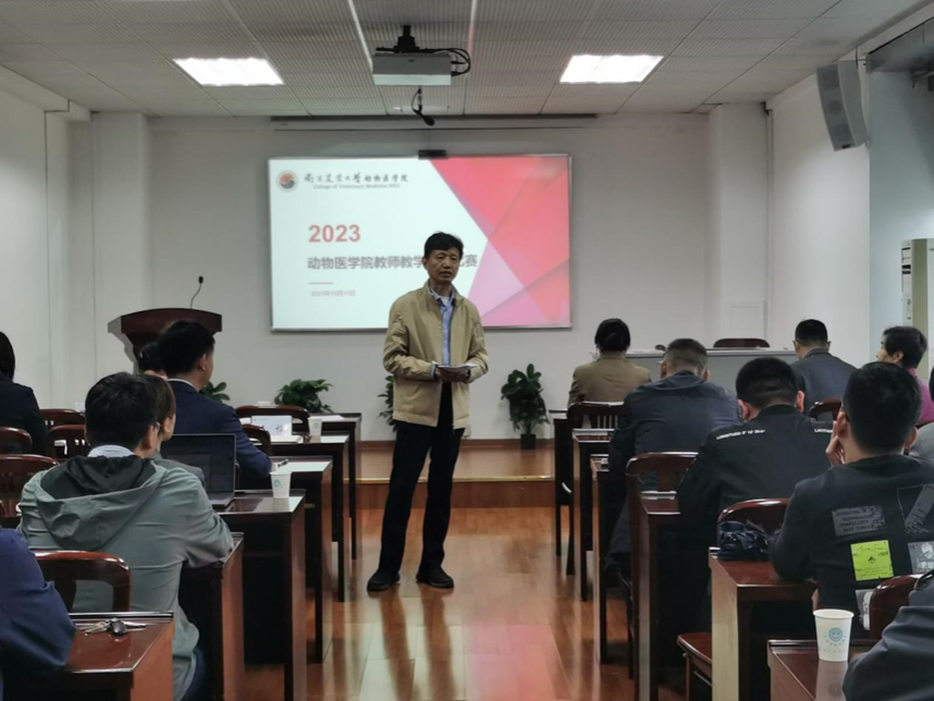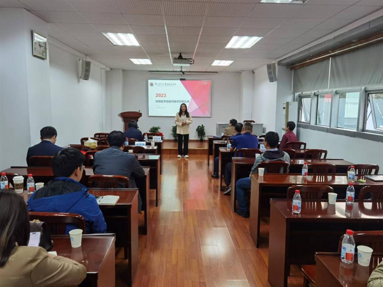 学院高度重视本次教学创新比赛,本次比赛邀请全国教学名师王恬教授、教务处丁晓蕾处长、督导陶功俊老师,姜岩书记、平继辉院长、姜平教授、赵茹茜教授、周振雷教授和曹瑞兵副院长担任评委,进行点评及打分。赛前,曹瑞兵副院长作简短发言,说明本次教学比赛的内容、意义和重要性,他指出举办此次比赛既是选拔优秀课程团队、优秀教师代表学院参加学校比赛的有效方式,也是学院组织教学研讨和教学团队建设的一项重要举措,本次比赛对于提升教师教学水平、提高教学质量、培养卓越动物医学和动物药学人才具有积极意义。