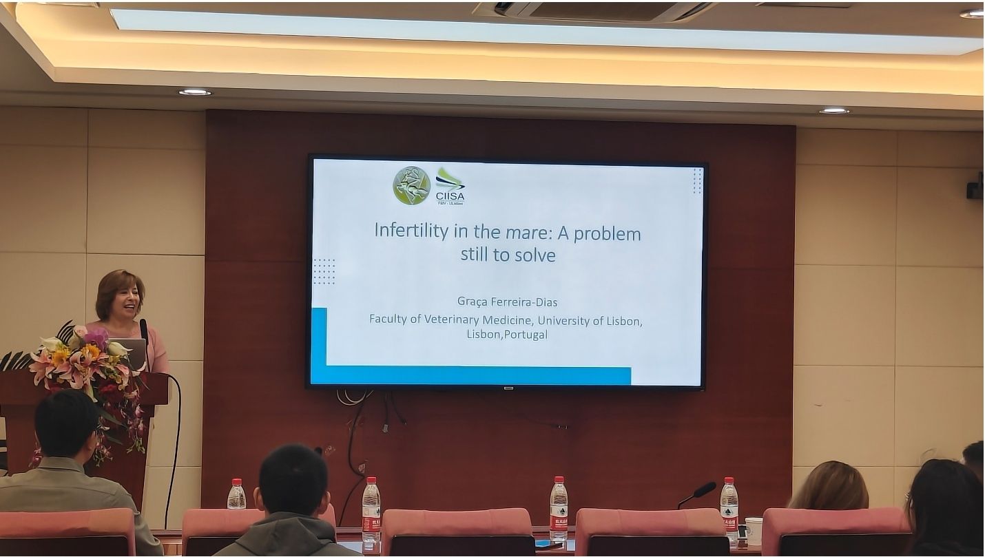 10月14日上午,Ferreira-Dias教授为我们师生做了题为“Infertility in the mare: A problem still to solve”的精彩报告,深入讲解了引起马繁殖障碍的主要病因及发病机制方面的最新研究进展,并详细介绍了马繁殖障碍性疾病诊疗方面的最新研究成果。Ferreira-Dias教授、Athina Basioura教授和与会师生积极互动交流,现场讨论气氛热烈。