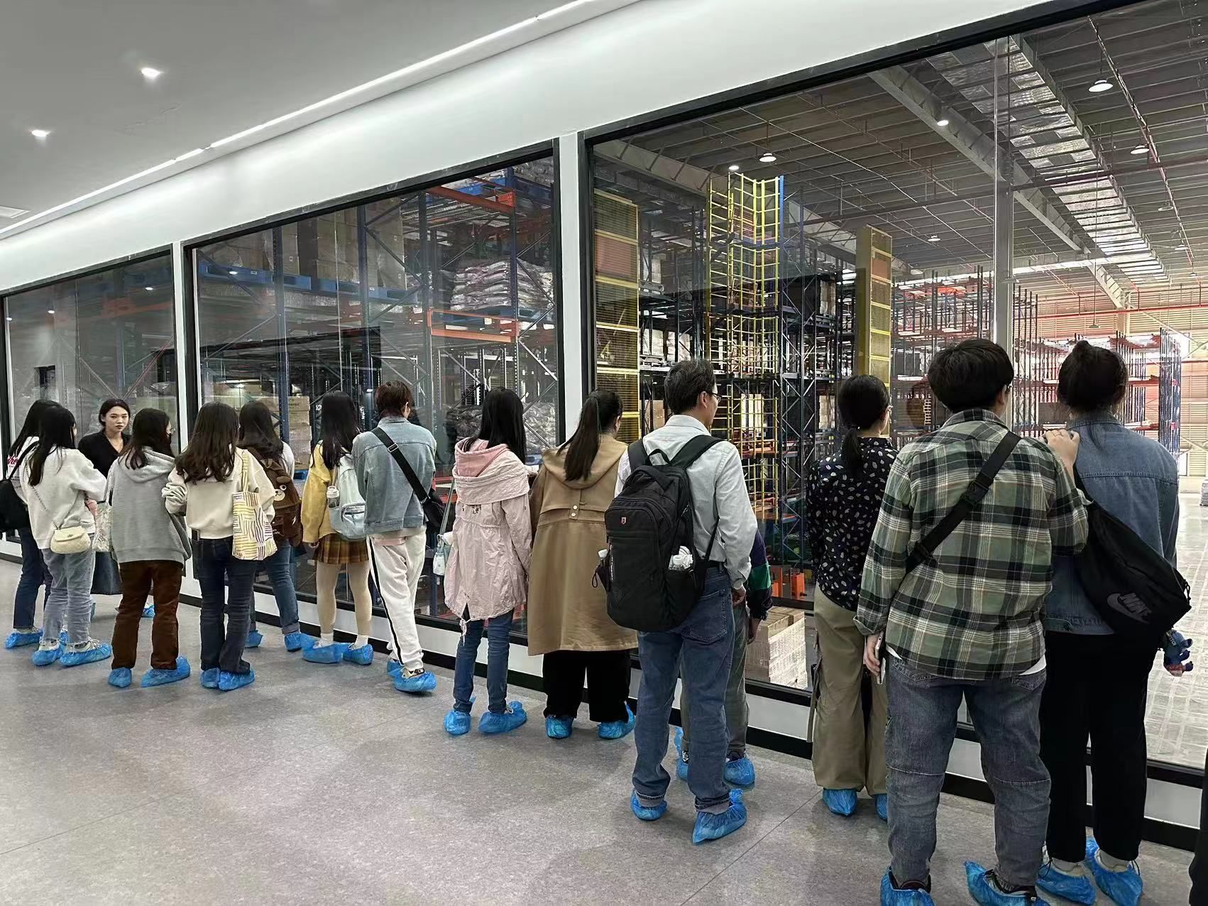 在工作人员带领下,师生一行人走进上海福贝4.0智能工厂,先后参观了可视化生产信息数据大厅、CNAS认证检测实验室、全智能无人无灯化管理立体仓库、全自动三码一体同步溯源信息包装线、全生产线中央控制中心,及高肉处理设备、CIP食品级净化水清洗系统、Wenger高鲜肉膨化机等一系列行业顶尖生产设备。