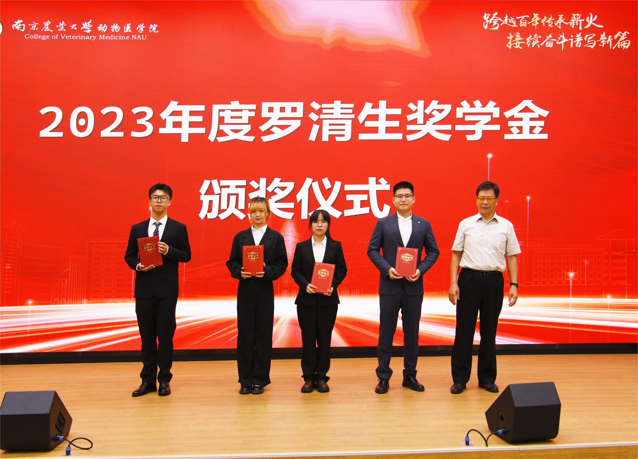 会上举行了罗清生奖学金颁奖礼。张敬友作为首届“罗清生奖学金”获得者表达了对先生的崇敬之情,回顾了自身在罗清生精神指引下,立足兽医本职,求真务实,坚守国门安全关口的职业生涯故事。