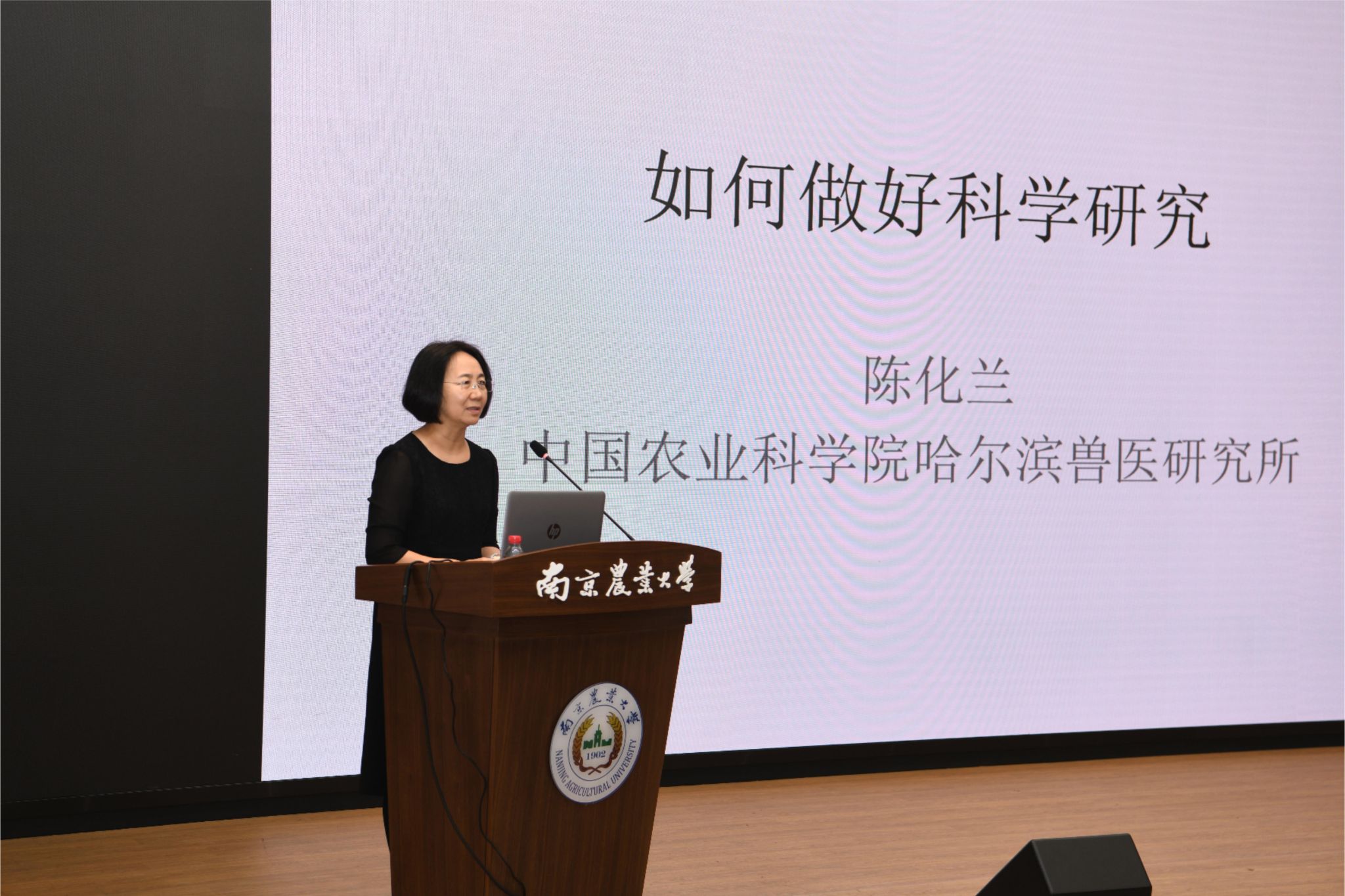 陈化兰讲授《院士公开课》,她首先高度评价了罗清生为我国兽医教育事业作出的突出贡献,就兽医人如何做好科学研究,她结合自己在禽流感病毒研究方面深耕近30年的研究经历,强调做科研要专注、自信、自治;就如何高效做科研,她强调研究选题要精准,方向要稳定,同时要正确对待项目申请;就研究生培养,她指出要充分尊重学生,注重培养学生的大局意识和合作精神,把学生当做宝贵的助手,亲密的合作者和最重要的同行。她勉励青年教师和学子要传承老一辈兽医精神,继往开来,不懈奋斗,用知识和创新推动我国兽医事业不断发展。