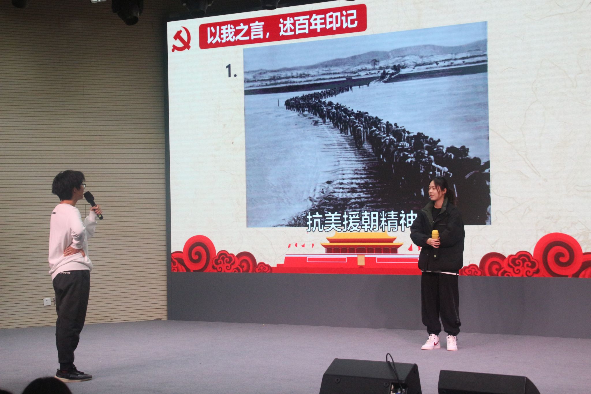 在“以我之语,话百年征程”环节中,来自各班的八位代表以所叙述的故事时间为顺序,聚焦建党百年、讲述党史故事。各选手精彩的演讲让观众仿若置身当时,穿越时间、共忆往昔峥嵘岁月。