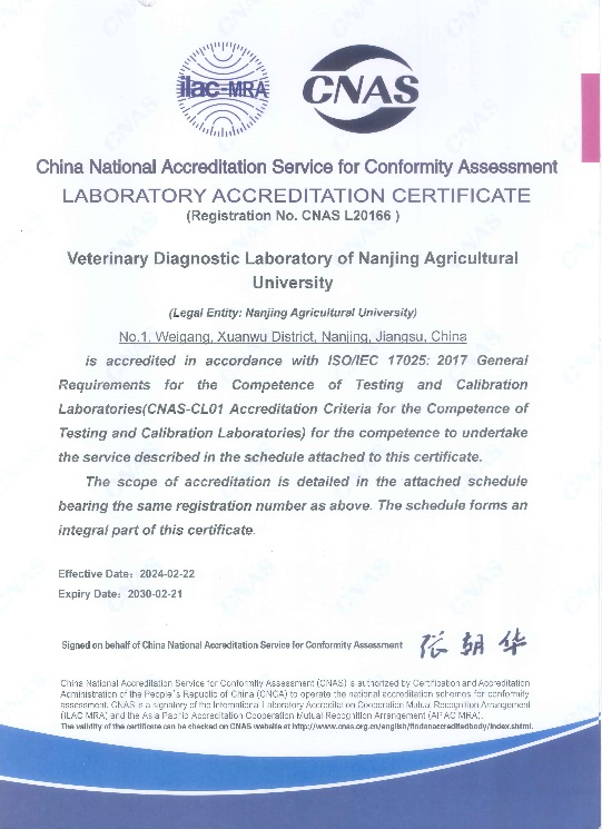 2月22日,伟德bevictor中文版兽医诊断与检测中心正式通过中国合格评定国家认可委员会(CNAS)文件评审、现场评审及后续考察,成功获得CNAS实验室认可证书。这标志着中心已经建立符合国际标准的质量管理体系,具备了国家及国际认可的硬件设施、管理水平和检测能力,检测数据具有国际权威性和公信度。