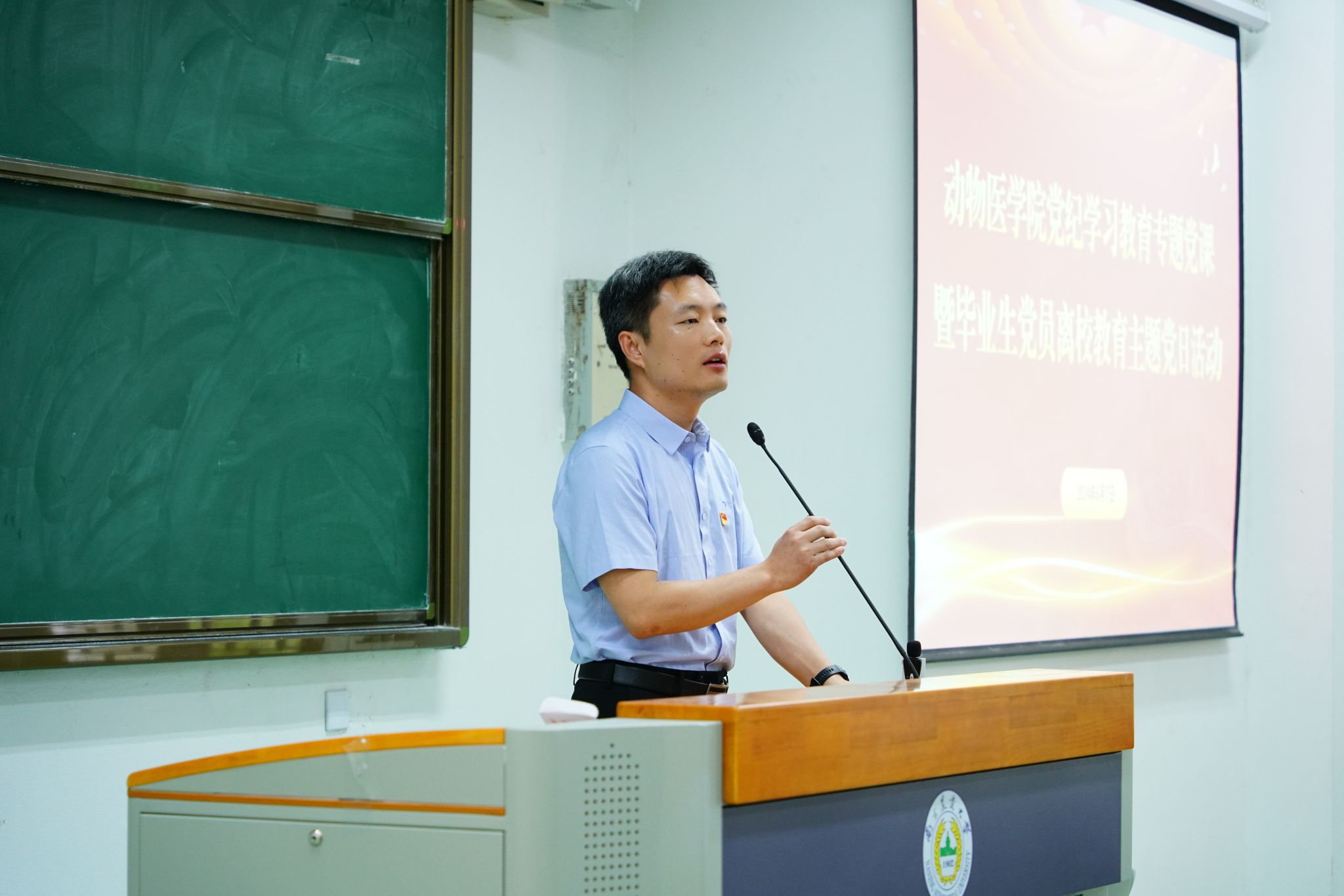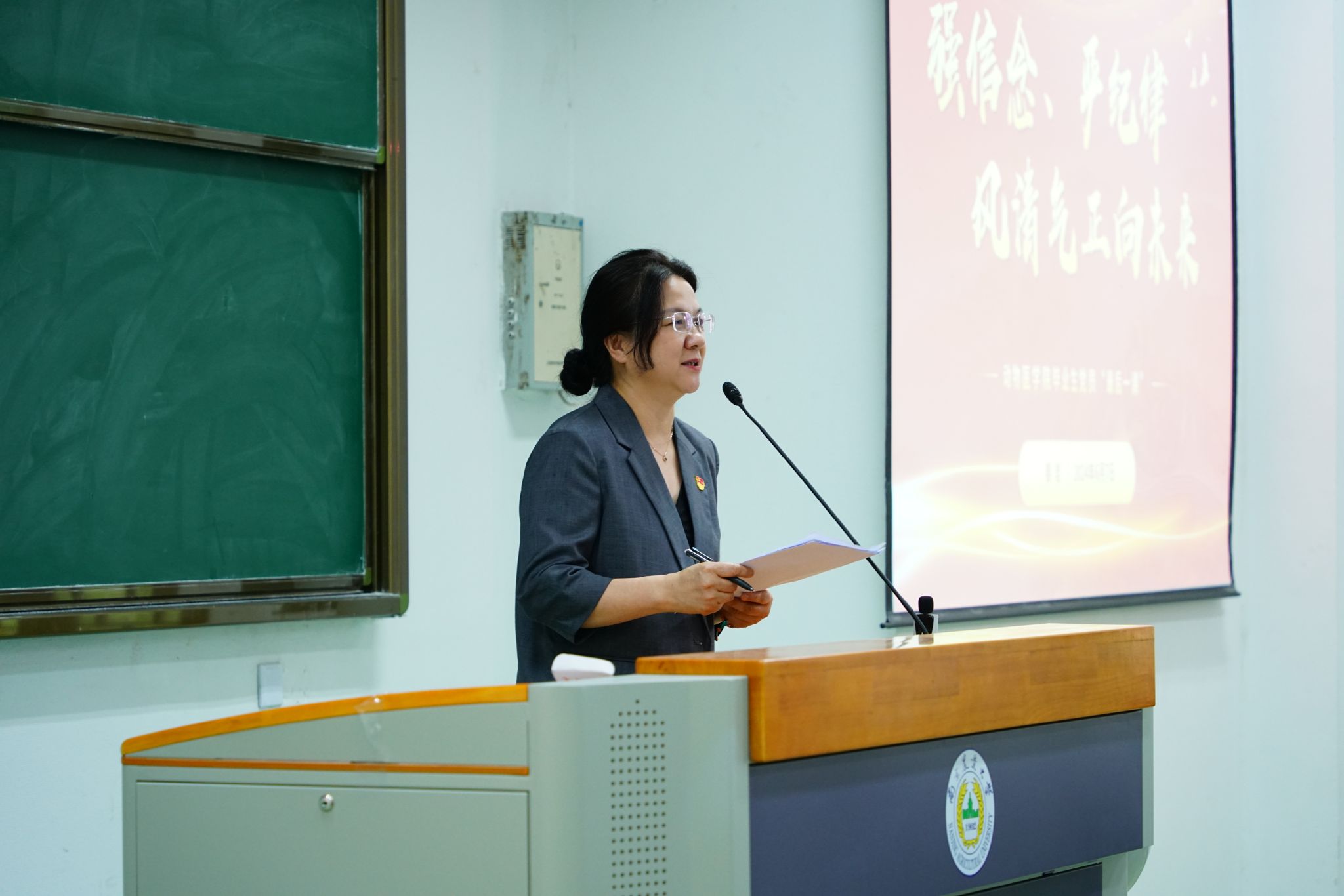 姜岩以《强信念、严纪律,风清气正向未来》为题,作党纪学习教育专题党课报告暨毕业生党员“最后一课”。报告从毕业生即将面临的变化和挑战切入,重点阐释了党纪学习教育开展的必要性和重要性,以案说纪、以案为鉴、以案明责,引导毕业生党员坚定信念,夯实信仰根基,捋清“个人与集体”的关系”;严守纪律,筑牢思想底线,捋清“利益和得失”的关系;廉洁从业,走好职业“第一步”,捋清“当下和未来”的关系”。姜岩强调,不论在各行各业,同学们都要跳出小恩、小惠、小利,守稳初心、敬畏初心、不负初心。