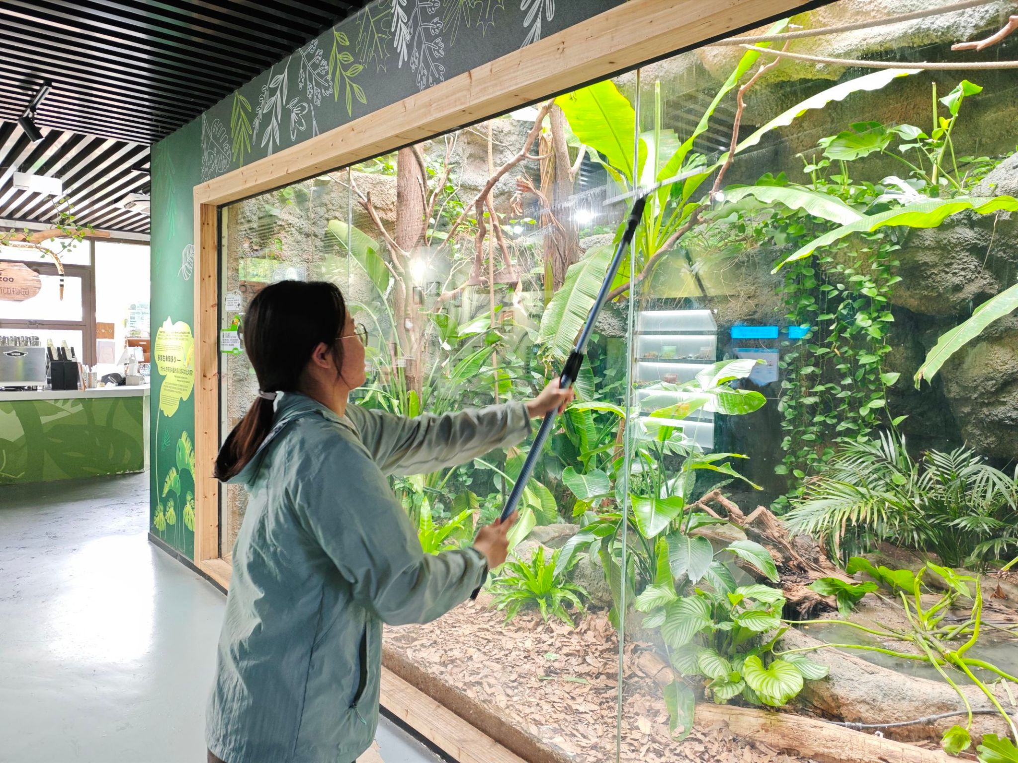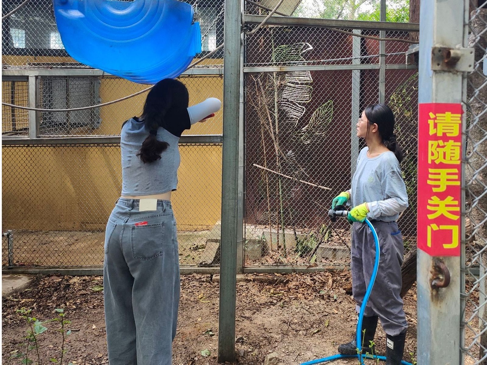 同学们穿梭于各个场馆,全神贯注地学习和工作,虽然忙碌但收获满满。在与饲养员们的相处过程中他们不仅学到了专业的野生动物保护知识,更深刻体会到了这份工作的艰辛与责任。同学们纷纷表示,这次实践让他们对野生动物保护有了全新的认识。一位同学说:“以前只是在书本上了解,这次亲身参与,才真正感受到每一个细节都关乎着动物们的生存和健康。”
