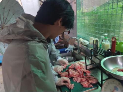 狼区的同学们为狼群准备了新鲜的肉类,并在饲养员的指导下学习如何安全地投喂。在打扫狼舍的过程中,学生们体会到了狼及其他野生动物的生活环境对它们生存状态的重要性。通过与狼的接触,学生们深刻感受到了野生动物保护工作的艰辛与伟大,也更加坚定了保护动物的决心。