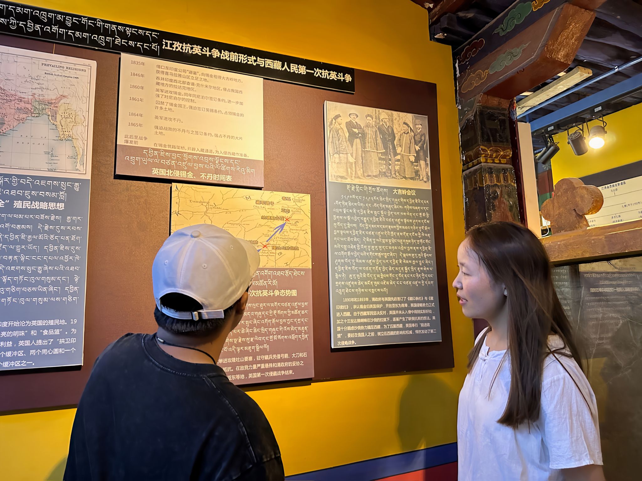 在江孜宗山抗英遗址,团队成员们参观了每一处遗迹,并通过导游的讲解以及展板描述了解到西藏人民在抗击外敌中的英勇事迹。在江孜宗山英雄纪念碑前,团队成员们肃立默哀,表达对英雄们的敬意。