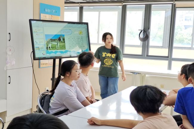 2024年7月12日,志愿者们集合前往睿泽障碍人士服务中心开展农场动物知识科普活动。志愿者在工作人员的引导下参观了服务中心的各个设施,了解了学员们的生活、学习环境和日常活动安排并按照分工迅速展开准备工作,在学员们落座前有序完成了教学用具和道具的布置、视频设备的调试和手工材料的准备。