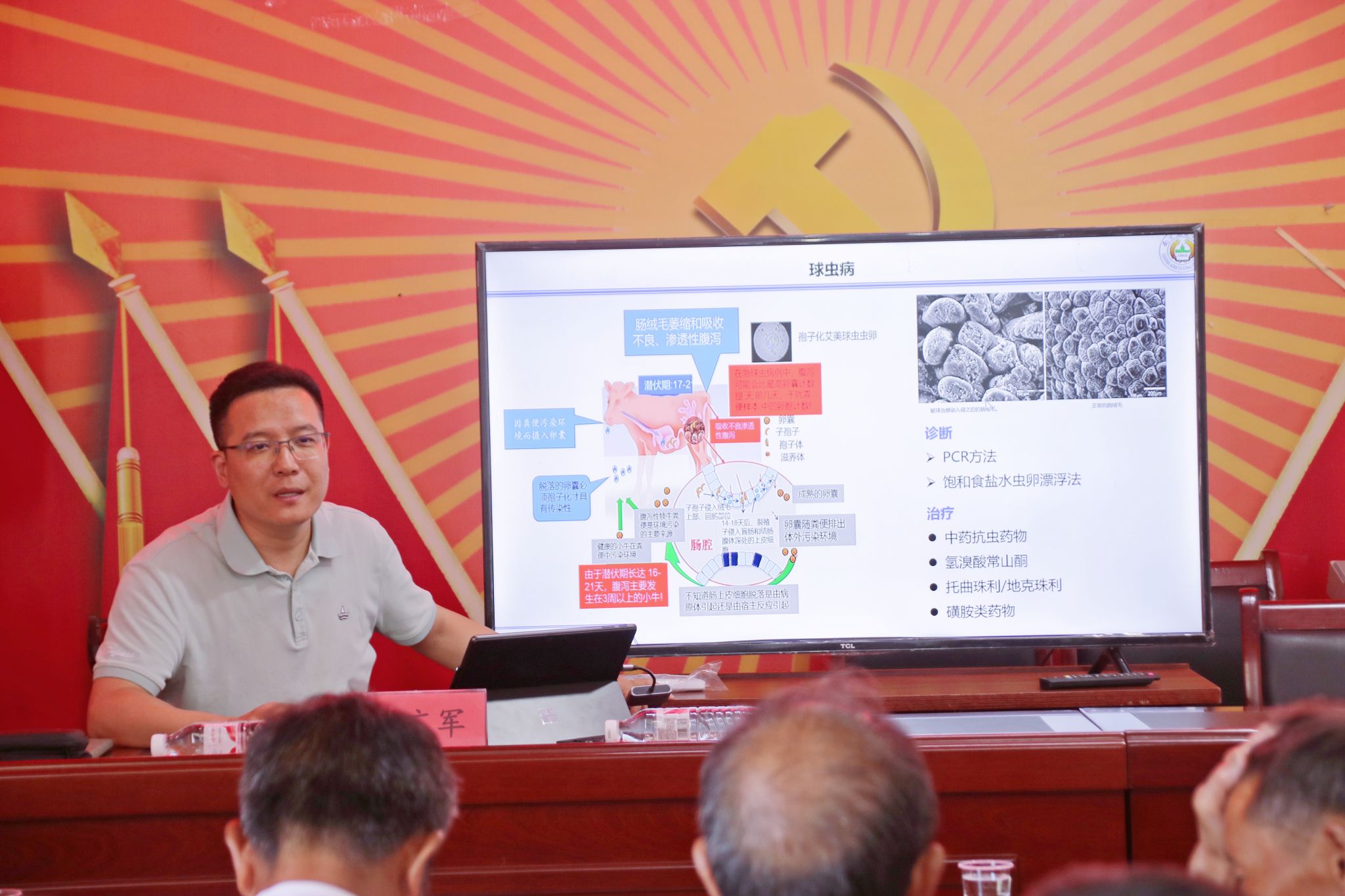 常广军为肉牛养殖户做《肉牛养殖常见疫病防控技术》专题培训讲座。