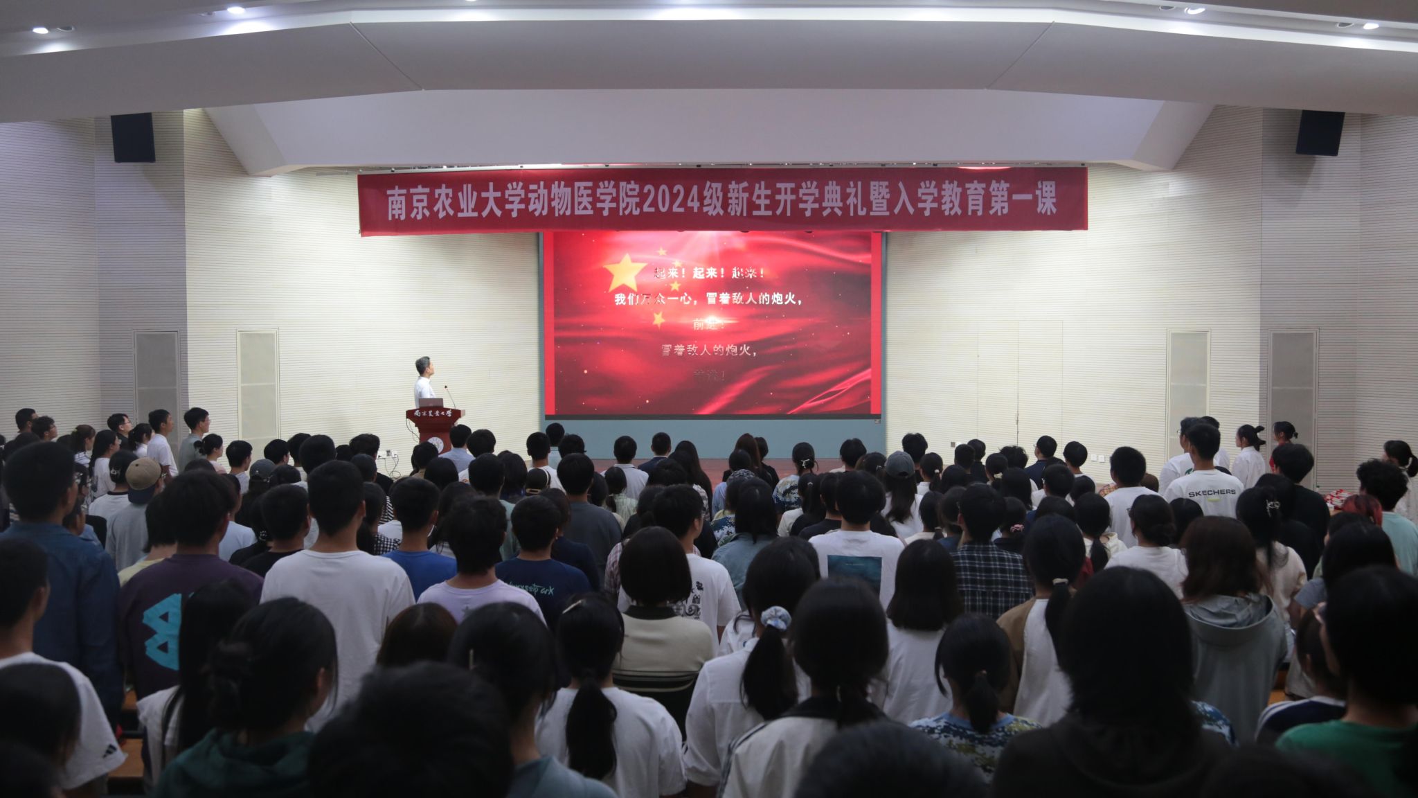 全体新生在领誓人的带领下进行入学宣誓,将“兽医人的职责和使命”铭刻于心。