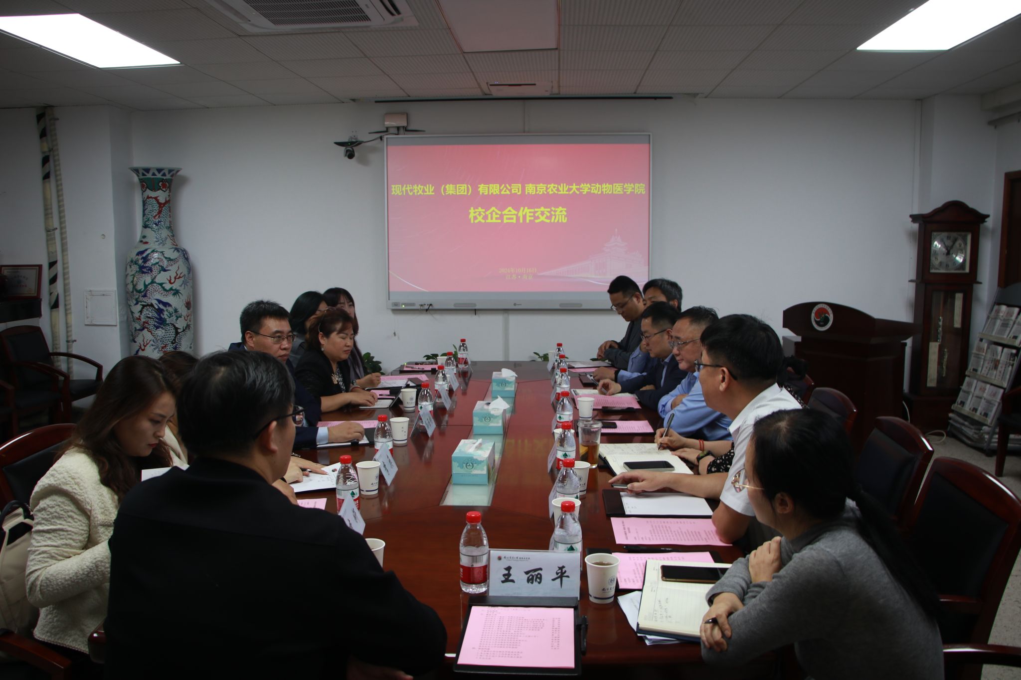 为进一步拓展校企合作领域,深化产教融合和协同育人成效,10月16日下午,现代牧业(集团)有限公司总裁孙玉刚一行来到我们开展校企合作洽谈会。伟德bevictor中文版党委常委、副校长单正丰出席座谈交流,现代牧业集团副总裁、人力行政负责人袁丽,企业文化与宣传总监李奂、运营二中心HRBP总监李妍、运营三中心HRBP总监梁茹、高级组织与招聘经理郝婧妤、高级人才发展经理孙家亮,伟德betvlctor体育官网党委书记姜岩、副院长(主持工作)平继辉、研究生院副院长苗晋锋,伟德betvlctor体育官网党委副书记李云锋、副院长刘斐、副院长常广军以及王丽平教授等参加会议。会议由姜岩主持。