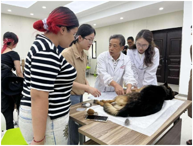 8月2日-8月9日期间,在学校国际合作与交流处(港澳台办公室)和国际国教学院(密西根学院)的带领下,刘家国教授、许心怡教授及我们本科生、研究生志愿者们,克服时间紧、任务重、高温酷暑等挑战,开展了主题为“探索中国传统兽医学”的活动,来自美国、巴基斯坦、新加坡、泰国、越南等10个国家的20余位学员学习中国古代兽医典籍,了解针灸、草药疗法等传统治疗方法,亲身体验中国传统兽医学。在理论课程与实践操作相结合的学习方式中,学员深入理解中国传统医学的智慧及其对现代医学的贡献,增强了他们对中国文化的认同与欣赏。