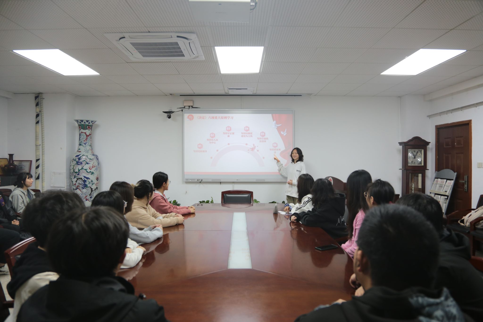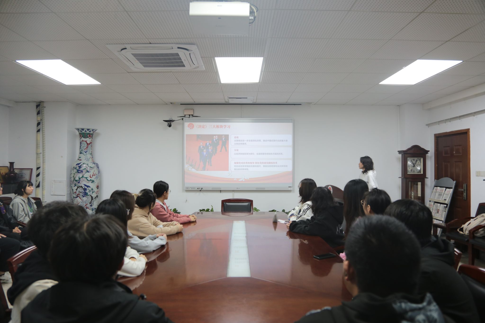 张欣怡强调,学习贯彻全会精神,不仅要深刻理解其核心要义,更要将其转化为推动工作的强大动力。一是要深入学习领会全会精神,切实把思想和行动统一到党中央的决策部署上来;二是要紧密结合日常学生工作,积极探索和实践,切实践行全心全意为同学服务的宗旨;三是学生组织要加强团结协作,形成合力,共同为学院的发展贡献力量。