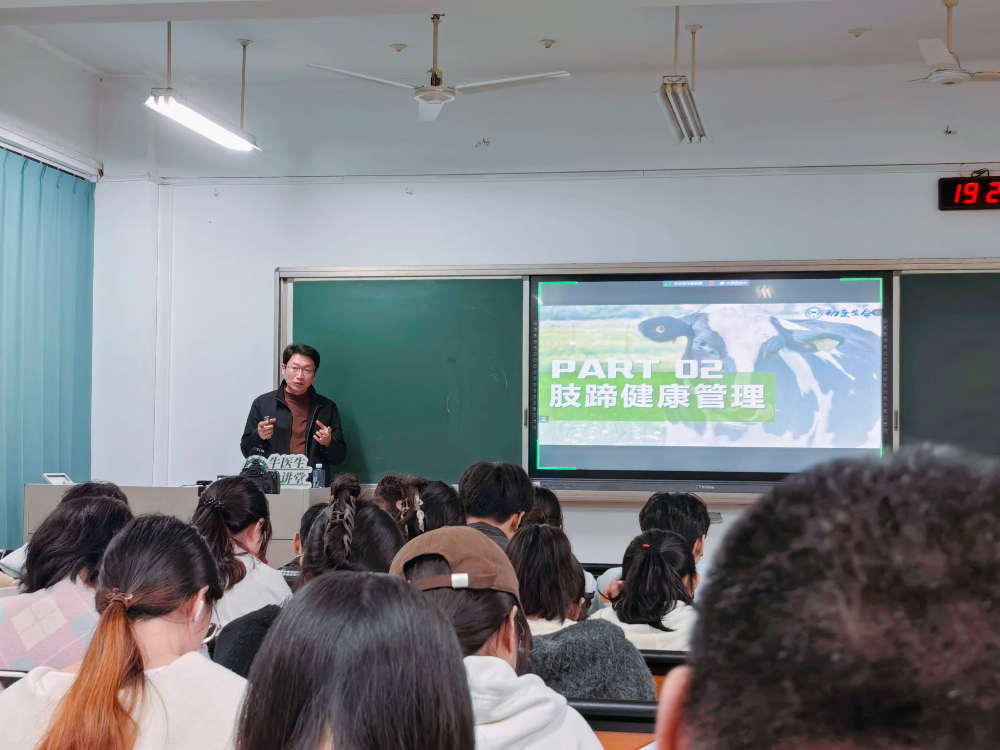 10月30日晚,伟德betvlctor体育官网2024年“牛医生大讲堂”专题培训第1期在卫岗校区 教学楼A204如期举行。本次培训主题为“牧场牛群健康管理”,由动康(南京)生命科学技术有限公司常务副总经理郭志刚主讲,吸引了近百名学生参加。