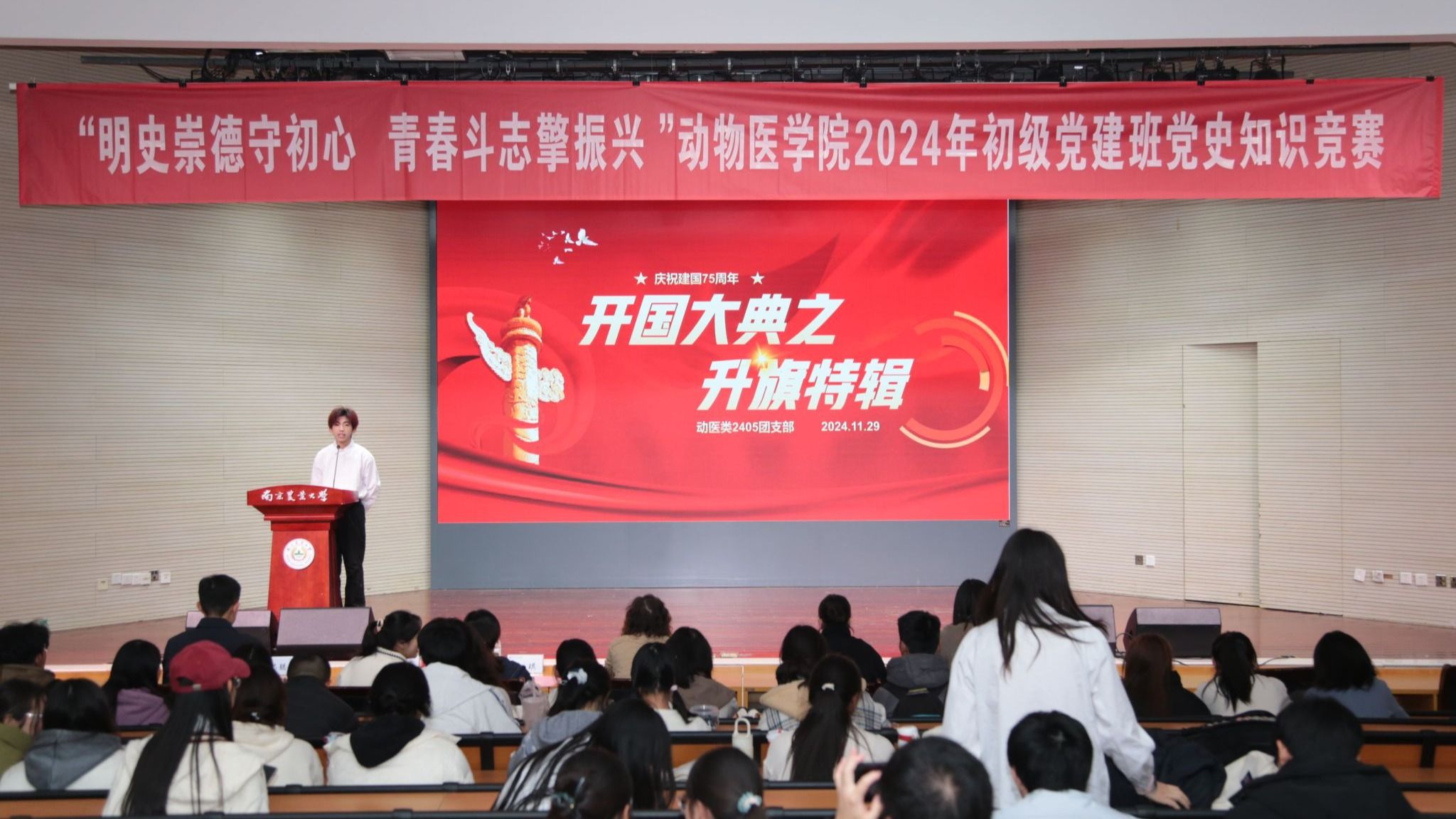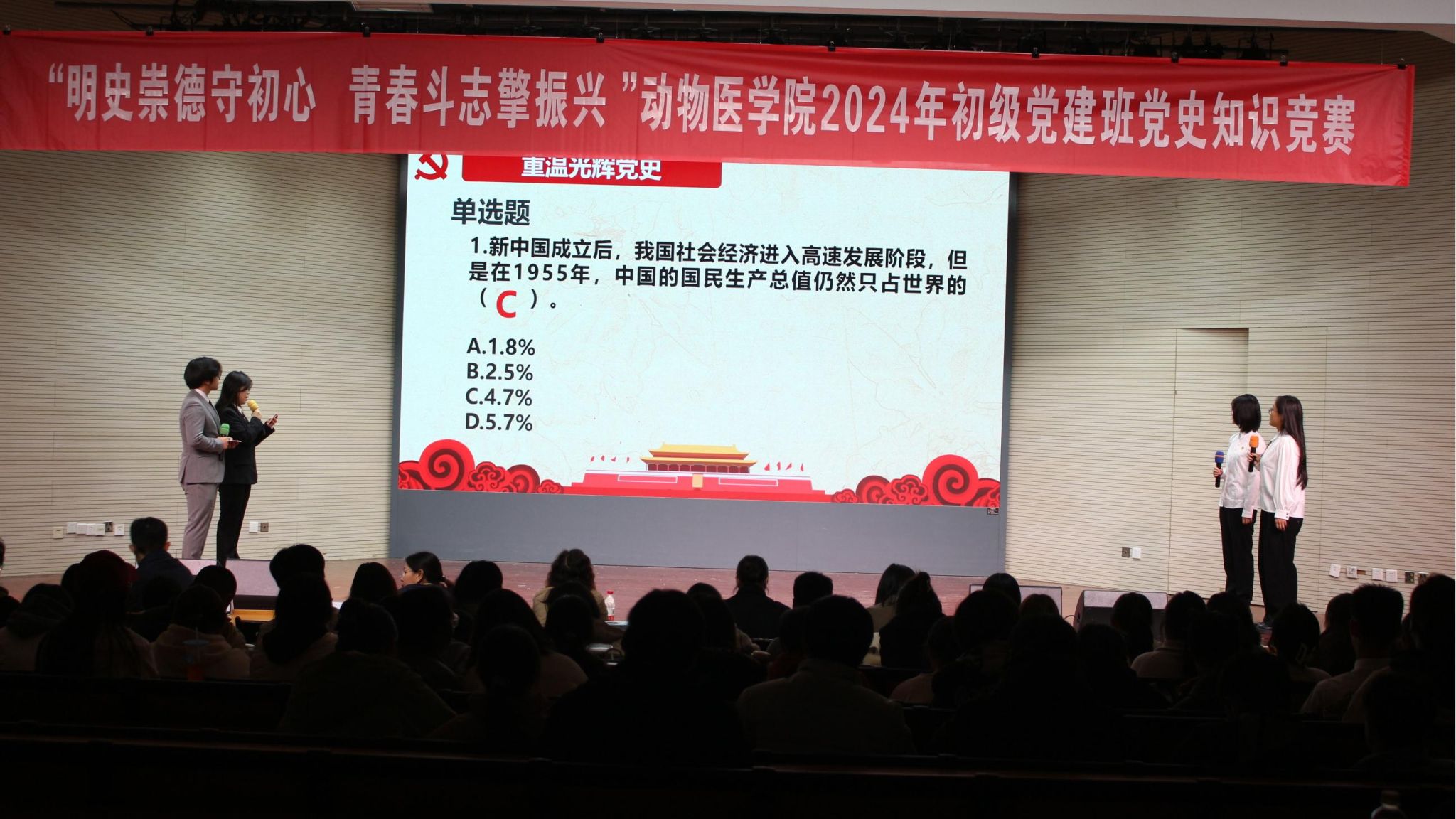 11月29日晚,伟德betvlctor体育官网于大学生活动中心报告厅举办“明史崇德守初心,青春斗志擎振兴”2024年初级党建班党史知识竞赛。伟德bevictor中文版研究生教育管理办公室主任郭晓鹏,人文与社会发展学院学工办主任王誉茜,农学院学工办副主任孙小雯,伟德betvlctor体育官网辅导员金洁南、安琪、汪明佳、尤思聪担任本次活动评委,学院2024年初级党建班全体成员参与了本次活动。