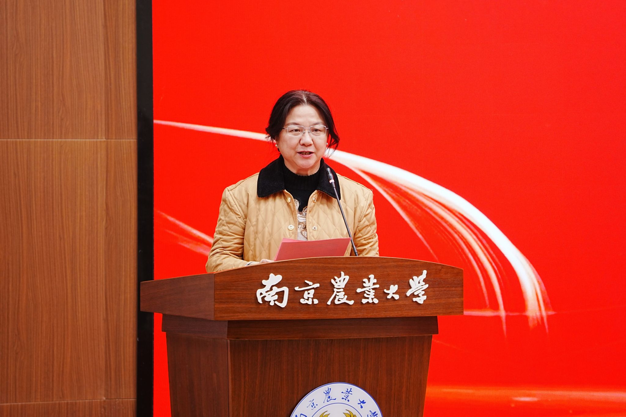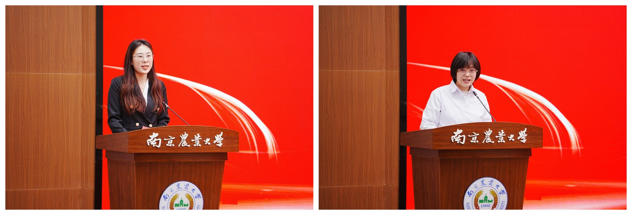 获奖学生代表兽医专业学位博士生毛宁宁和动物医学专业本科生田青分别上台发言。