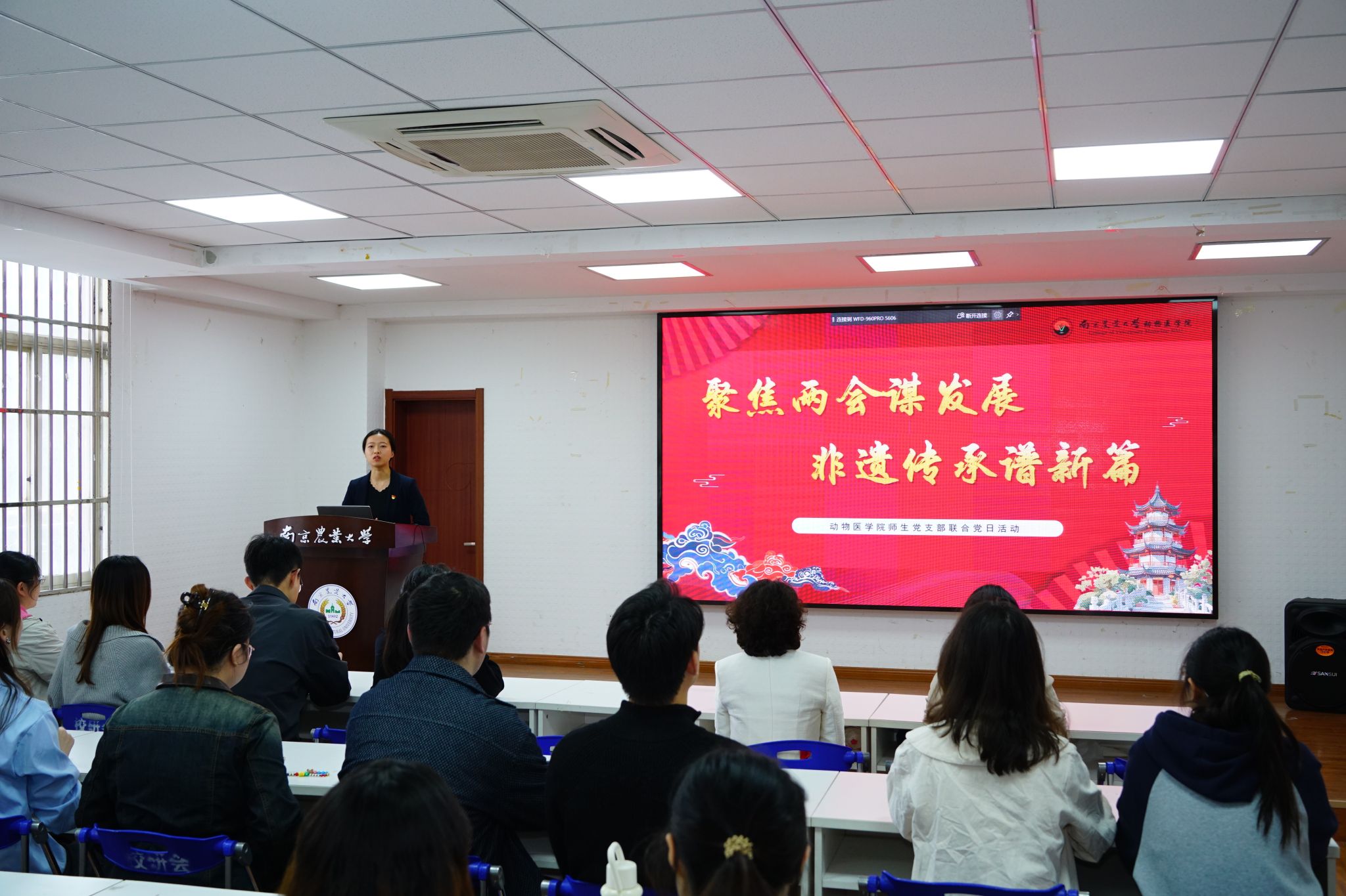 3月24日下午,伟德betvlctor体育官网“聚焦两会谋发展,传承非遗谱新篇”师生党支部联合党日活动在研究生报告厅顺利举办。校教务处副处长胡燕出席并做专题报告,学院行政教工党支部全体党员、本科生第一、二、三党支部书记和学生党员代表、研究生党员代表等共计40余人参与。