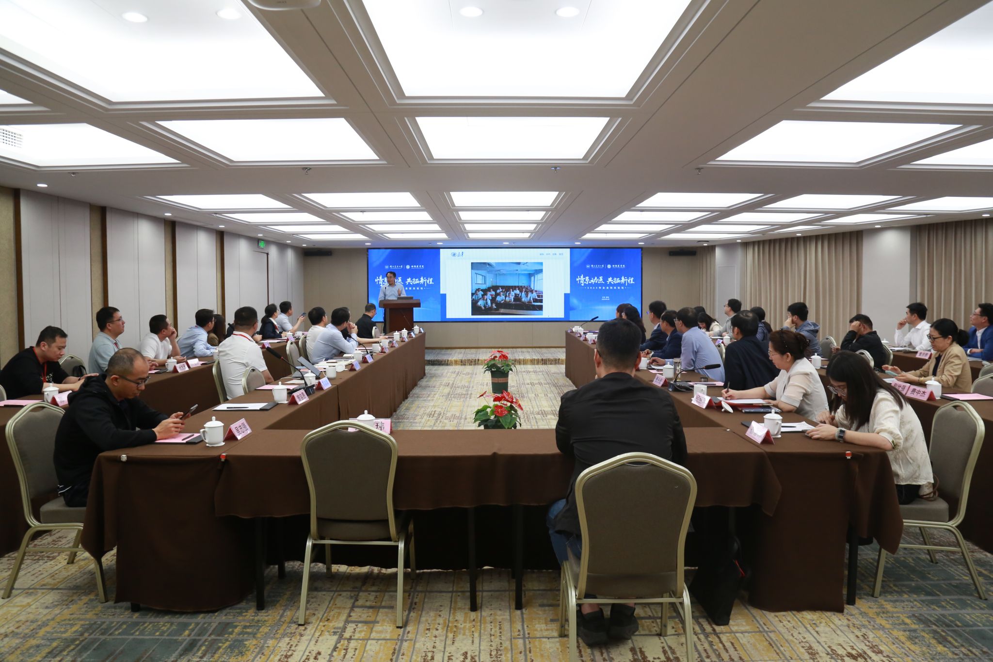 圆桌会议环节,农场动物分论坛由曹瑞兵教授主持,江苏立华牧业股份有限公司副总裁张海涛作“养殖企业兽医工作与对外合作”报告,企业校友和学院教师代表立足各自实践,就报告议题分享真知灼见,共同探讨行业高质量发展新路径。