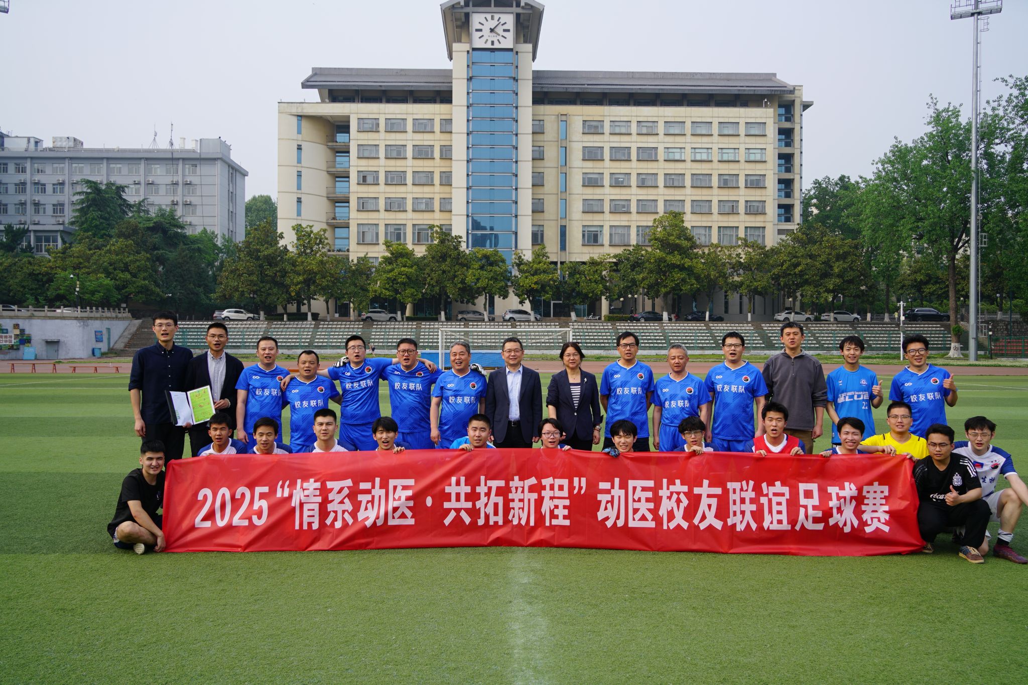 会后,在卫岗校区田径场举办了动医校友联谊足球赛,企业校友代表与学院师生以球会友、以赛传情,为校友们提供了重温校园记忆的机会,进一步筑牢了校友与母校的情感纽带。