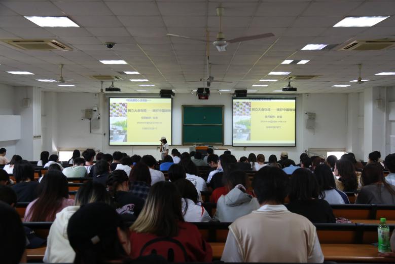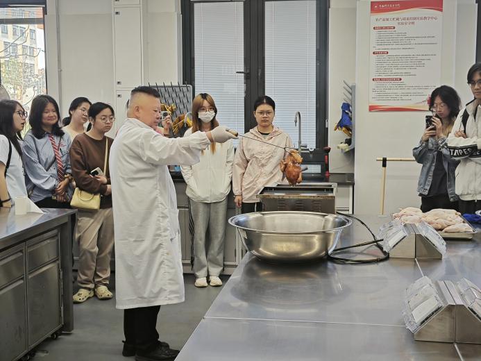 4月26日上午,在辅导员田文秀、尤思聪的带领下,学生们走进滨江校区食品科技学院。在专业教师的悉心指导下,同学们分组参与了蛋糕制作、香肠灌制、南农特色烧鸡制作食品加工全过程。通过亲手操作现代化食品加工设备,同学们不仅掌握了基础食品加工技能,还体会到了食品加工的乐趣。下午,全体学生在卫岗校区参加了由赵雪副教授主讲的《树立大食物观——端好中国饭碗》耕读教育专题报告,进一步深化了学生对现代农业和粮食安全的认识。