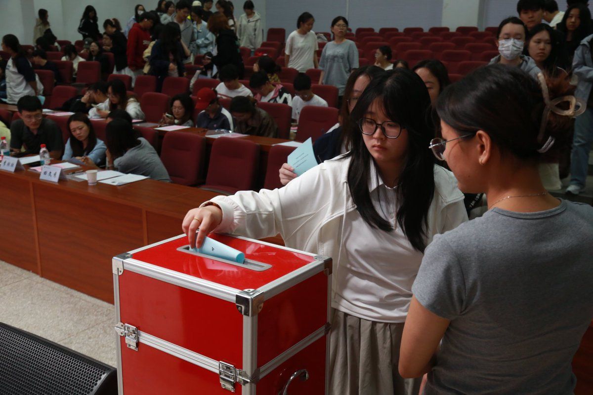学生组织负责人候选人从个人简介、岗位认知、个人优势劣势分析、问题和解决方案等方面进行了竞选演讲。大会本着公平、公正、公开的原则,以无记名投票的方式,从八名候选人中选举产生了毛瑞琪、宋牧时、姜姝惠、徐晓易、高雪漓、郭梦婉六人进入伟德betvlctor体育官网第四十二届学生组织负责人考察名单。