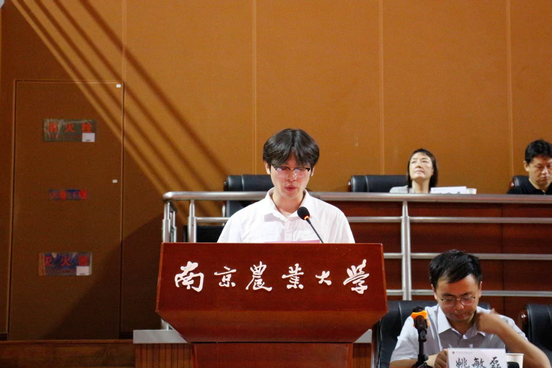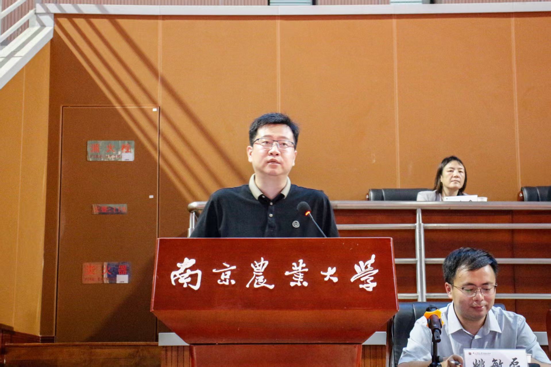 副院长(主持工作)苗晋锋首先在院史院情专题介绍中从学院的办学历史、师资力量、科研成果、社会服务、国际合作等多个方面展开,做了详细介绍,并强调新时代兽医的使命已从“给动物看病”升级成公共卫生、食品安全、生态安全与动物福利的“四位一体”守护者,希望全体新生能牢记校训、院训精神,锚定目标,成为具有家国情怀、世界眼光、南农品质的高素质兽医人才和行业领导者。