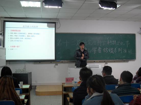 “走近钟山学者,开启学术之窗。”2015年12月10日下午,由伟德bevictor中文版研究生会主办,伟德betvlctor体育官网研分会承办的伟德bevictor中文版第十二届神农科技文化节之“钟山学者”访谈活动在教学楼B410成功举办。本次活动的特邀嘉宾为伟德betvlctor体育官网郭大伟讲师和植物保护学院李圣坤副教授,他们分别以“我的求学路”和“研究初体验”为题展开演讲,与在场同学分享了他们求学、科研之路的经验与心得。