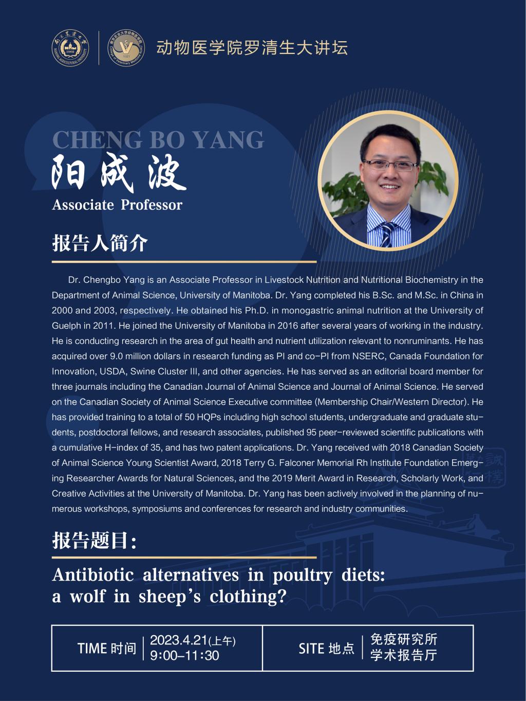 【学术报告】伟德betvlctor体育官网罗清生大讲坛-Antibiotic alternatives in poultry diets: a wolf in sheep's clothing?