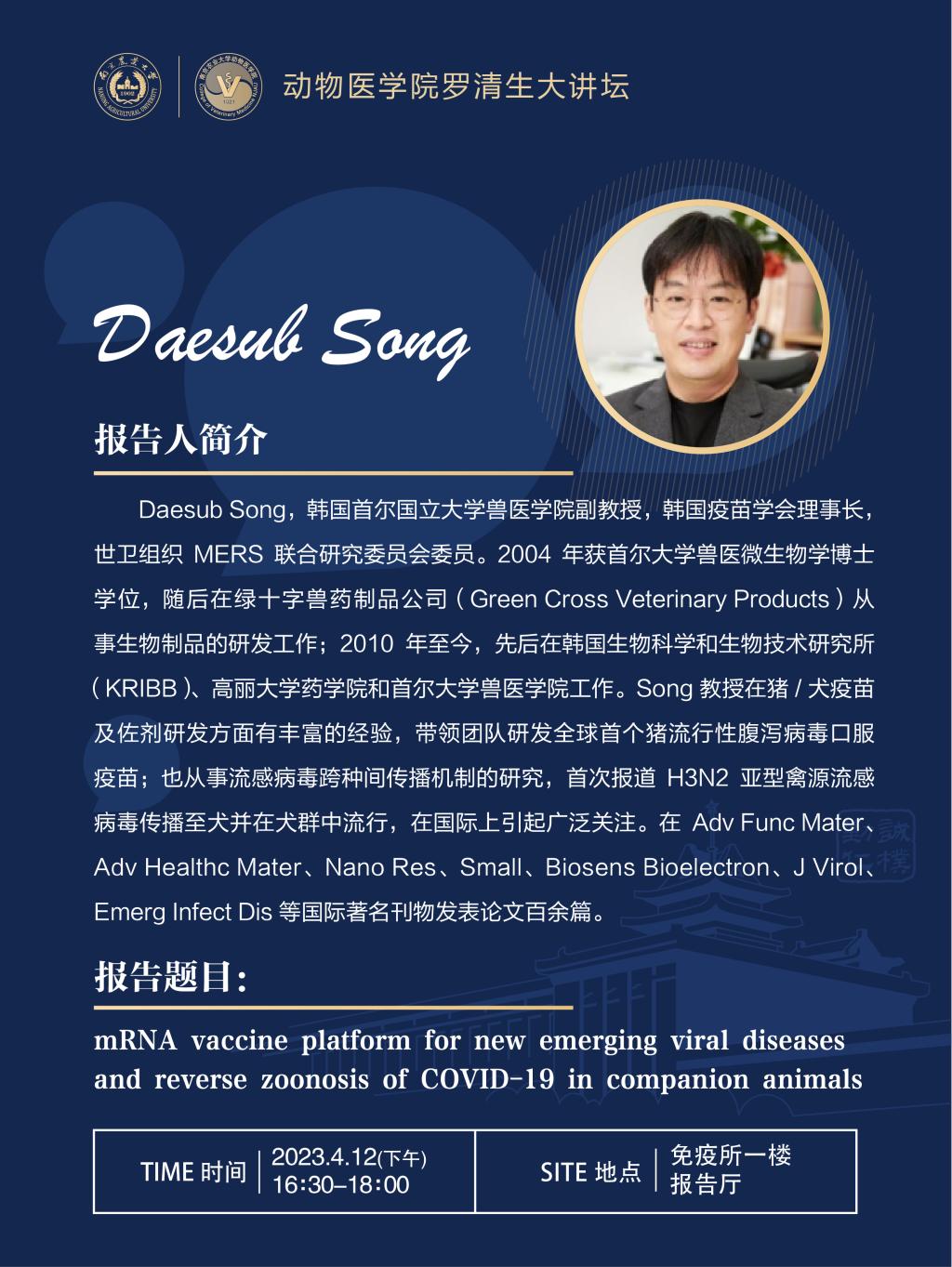 【学术报告】伟德betvlctor体育官网罗清生大讲坛-mRNA vaccine platform for new emerging viral diseases and reverse zoonosis of COVID-19 in companion animals