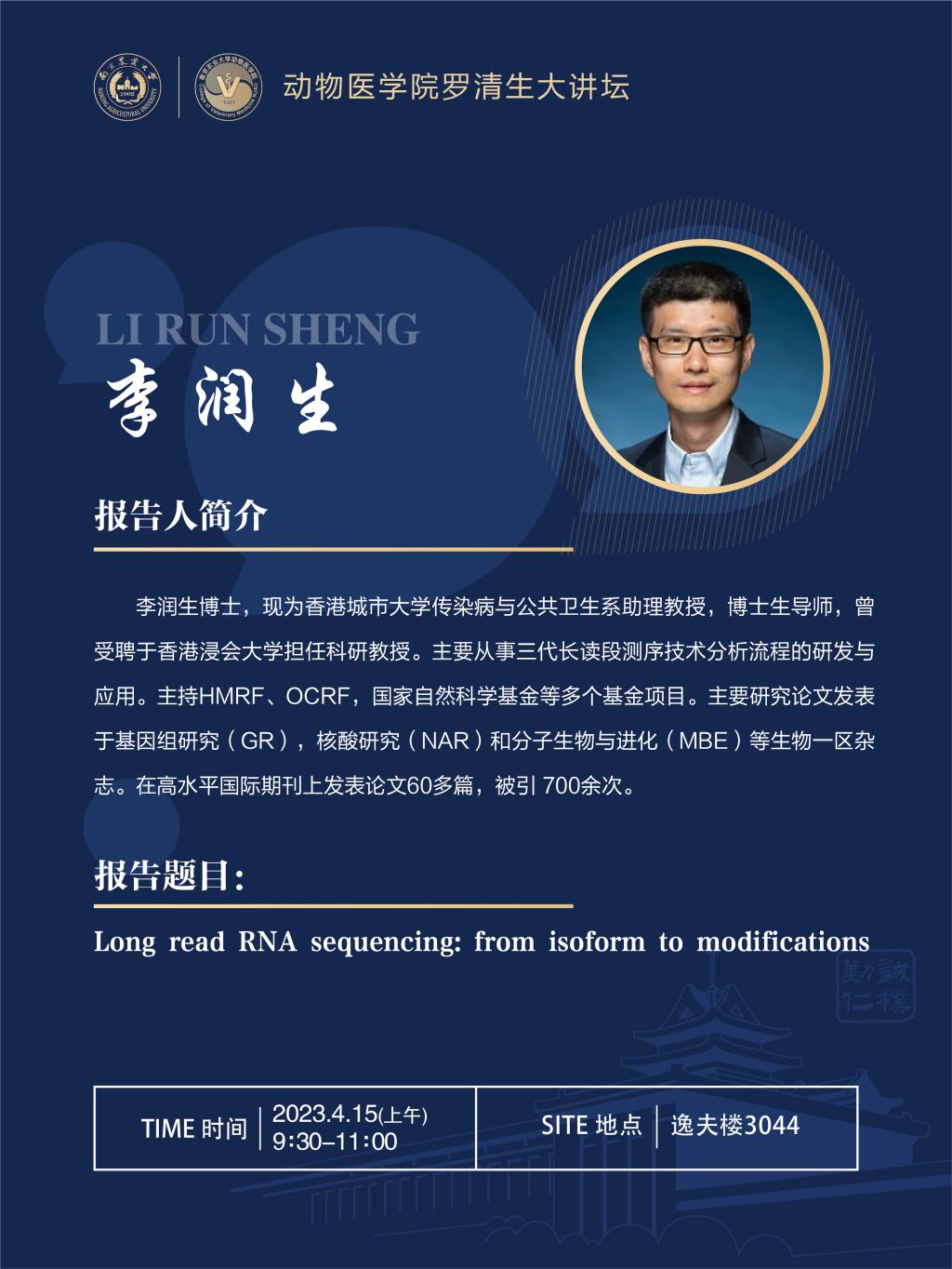 【学术报告】伟德betvlctor体育官网罗清生大讲坛-Long read RNA sequencing: from isoform to modifications