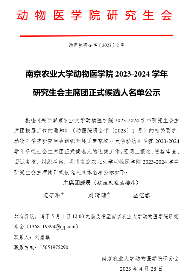 【学生工作】伟德betvlctor体育官网2023-2024学年研究生会主席团正式候选人名单公示