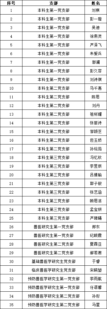根据伟德betvlctor体育官网党员发展工作安排,经党组织培养考察,党支部讨论,结合入党积极分子期间个人表现、结业考试成绩等综合情况,经学院党委审核,接收刘棋等35名同志为发展对象,现将名单公示如下(排名不分先后):